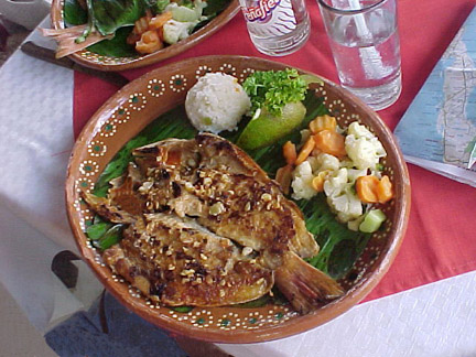 | Red Snapper grilled in a Banana Leaf served with an AjitoSauce |